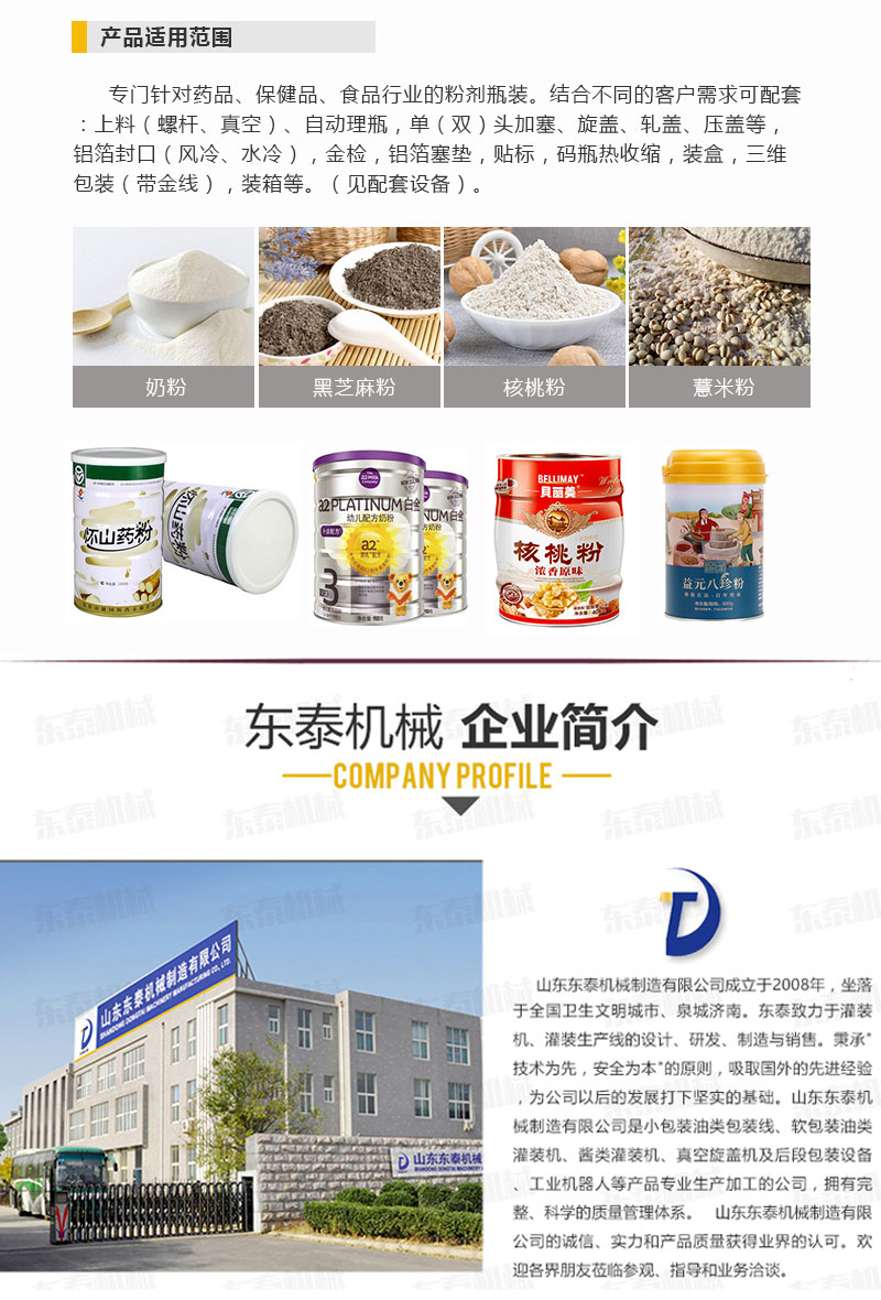 全自動粉劑灌裝機適用范圍