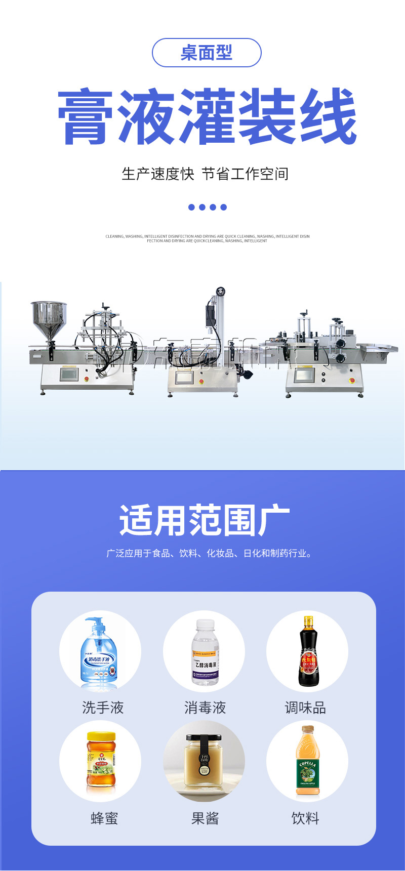 產(chǎn)品說明:生產(chǎn)線根據(jù)灌裝范圍選擇型號,灌裝部分為雙頭下潛式灌裝機,適用于不同物料不同瓶子的灌裝,配備自動壓蓋機和圓瓶貼標機,可實現(xiàn)不同蓋子的旋蓋貼標工作。 本設備主要適用于食品、日;