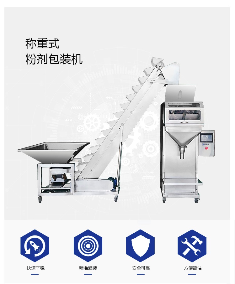 ZX-C型稱重式定量包裝機是一種機械給料與電子稱重組合的定量裝袋機械,廣泛適用于食鹽、化工原料、飼料、醫(yī)藥、糧食、食品添加劑等流動性較好的顆;蚍蹱钗锪系亩堪b,其優(yōu)點是:操作簡單、性能可靠、計量準確、價格便宜、耐腐蝕性強,是一種理想的定量包裝機械。