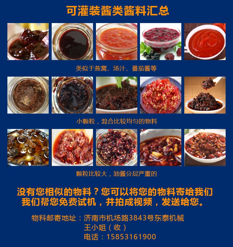該生產(chǎn)線適合中小口徑三旋、四旋玻璃瓶調(diào)味醬的分裝,適合醬料、含顆粒黏稠物料的灌裝,物料接觸部分均采用316不銹鋼,整機(jī)304不銹鋼,符合食品衛(wèi)生標(biāo)準(zhǔn)。該機(jī)設(shè)計(jì)合理,機(jī)型小巧,立式結(jié)構(gòu),節(jié)省場(chǎng)地,操作方便。啟動(dòng)部分均采用德國(guó)FESTO和臺(tái)灣AirTack的氣動(dòng)元件。灌裝閥有氣動(dòng)閥控制,灌裝精度更高,灌裝量和灌裝速度均可任意調(diào)整,灌裝悶頭采用防拉絲及升降灌裝裝置。
