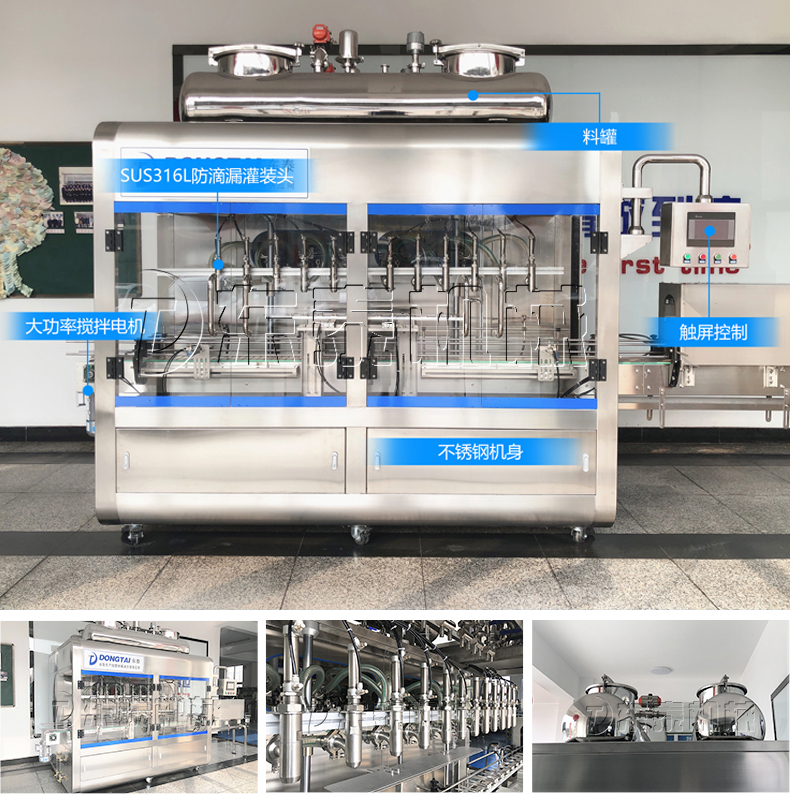 3、 該設(shè)備在設(shè)計(jì)上大大縮短了下料斗到灌裝頭的灌裝距離,克服了含油量大的物料(如:含芝麻粒的辣椒油)在灌裝過程中出現(xiàn)的有些瓶油多,有些瓶醬多的灌裝誤差大的缺點(diǎn)。