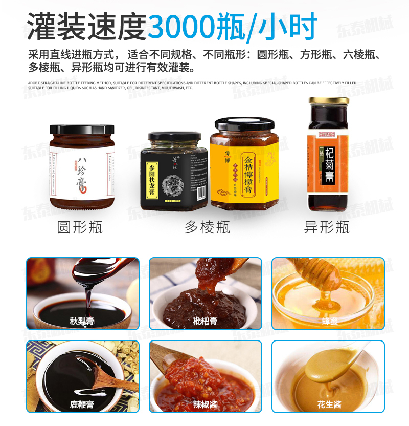 隨著我國包裝行業(yè)的飛速發(fā)展,近年來我國的蜂蜜食品行業(yè)逐步發(fā)展為我國國民經(jīng)濟(jì)中增長較快的,關(guān)注蜂蜜安全和身體健康的今天,基于綠色環(huán)保理念日益成熟的必然趨勢,為了能夠滿足社會的需求整套智能型瓶裝蜂蜜灌裝機(jī)械設(shè)備向自動化、智能化、高質(zhì)量、高效的方向邁進(jìn)。伴隨著每個領(lǐng)域都逐漸步入到全自動智能的時代,與以往的設(shè)備來說蜂蜜灌裝機(jī)設(shè)備已經(jīng)是發(fā)生了翻天覆地的改變其操作更加簡略,一鍵操作,不只提高了企業(yè)的生產(chǎn)制造功率,也為企業(yè)降低了辛勤勞動本錢的花銷。可以很好的避免不必要的麻煩發(fā)生同時蜂蜜灌裝機(jī)得到更多客戶的信任。